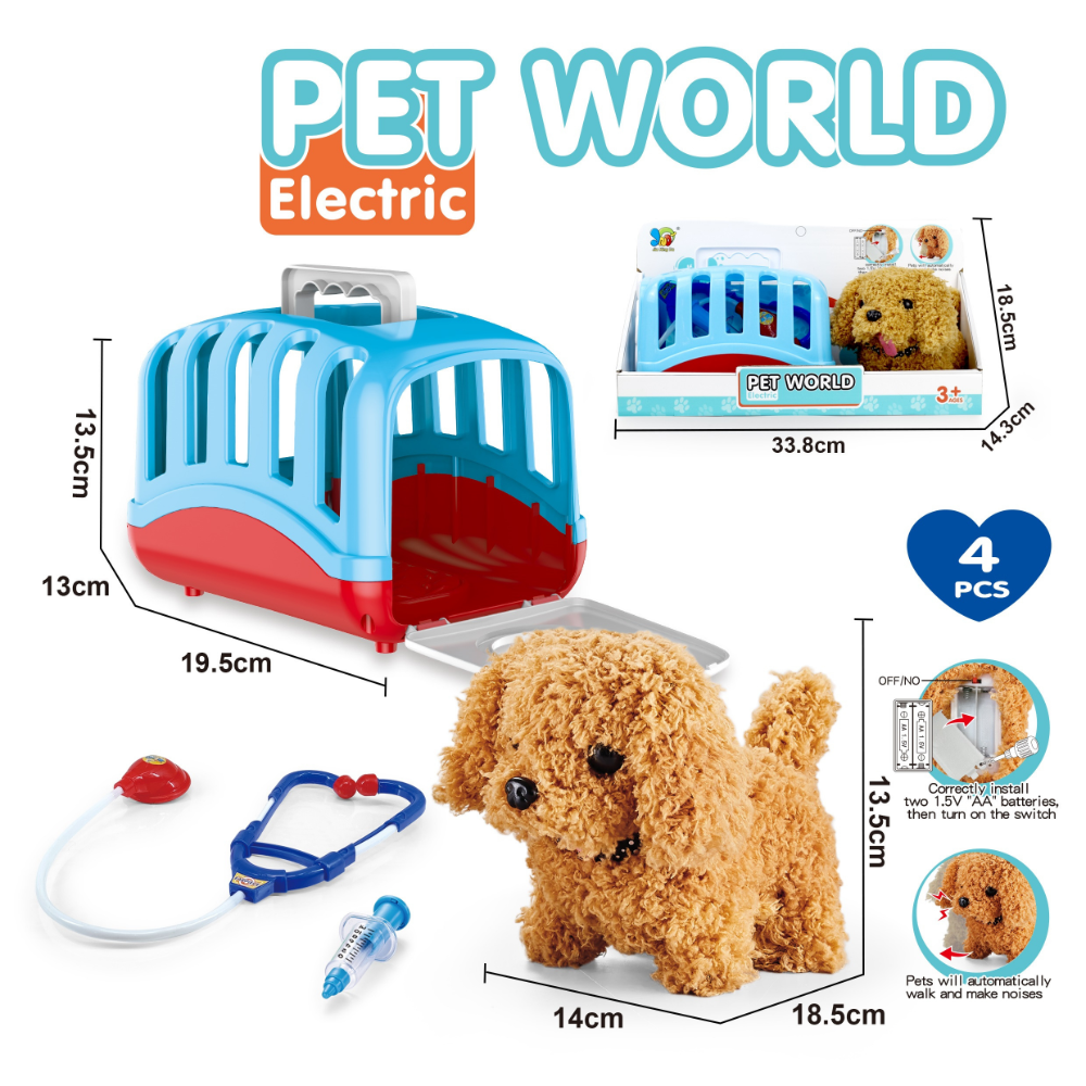 This Vet Set is perfect for little animal lovers who want to care for their furry friends! This interactive set includes a soft, fluffy dog that moves, wags its tail, and barks when turned on, just like a real pet. It also comes with a dog cage, syringe, and stethoscope, allowing kids to play the role of a vet and give their pet a check-up. Designed for imaginative role-play, this set encourages empathy, creativity, and fine motor skill development.