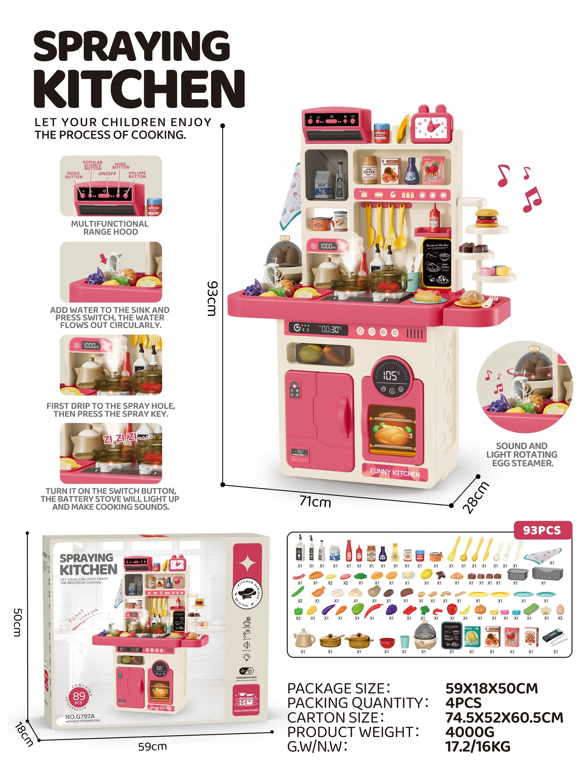 Cogo - Pretend & Play Kitchen Set with Light & Sound Effects - Pink - 89 Pieces