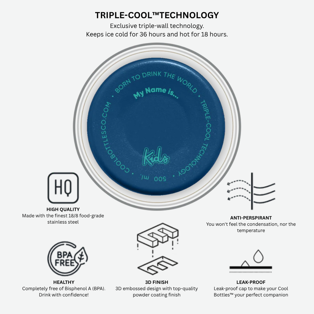 Cool Bottles - Kids Triple-Insulated Water Bottle - Fly Free 500ml