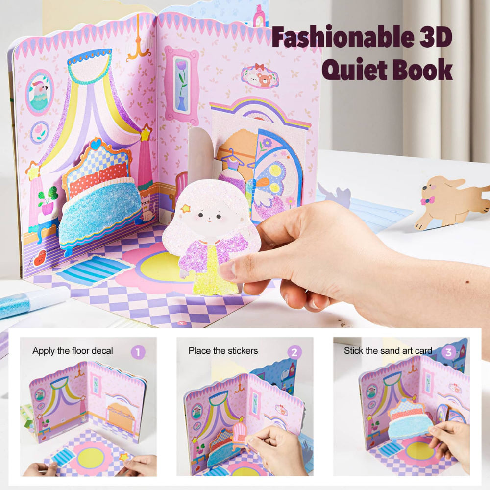 Watch your child's eyes light up as they build their very own magical dollhouse from scratch! This ingenious craft kit combines the satisfaction of 3D construction with the sparkle of glittery sand art.