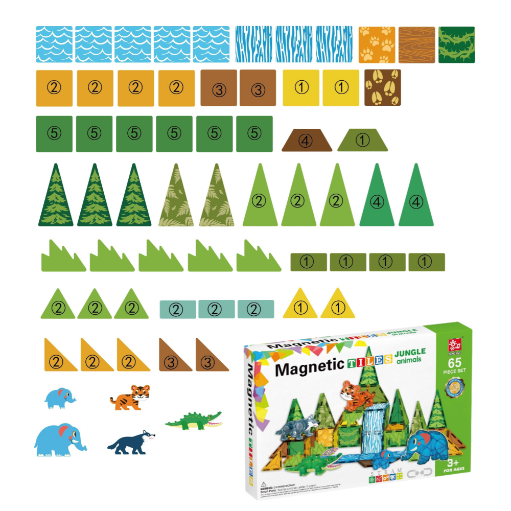 Magnetic Tiles - Jungle Animals Set - 65 Pieces