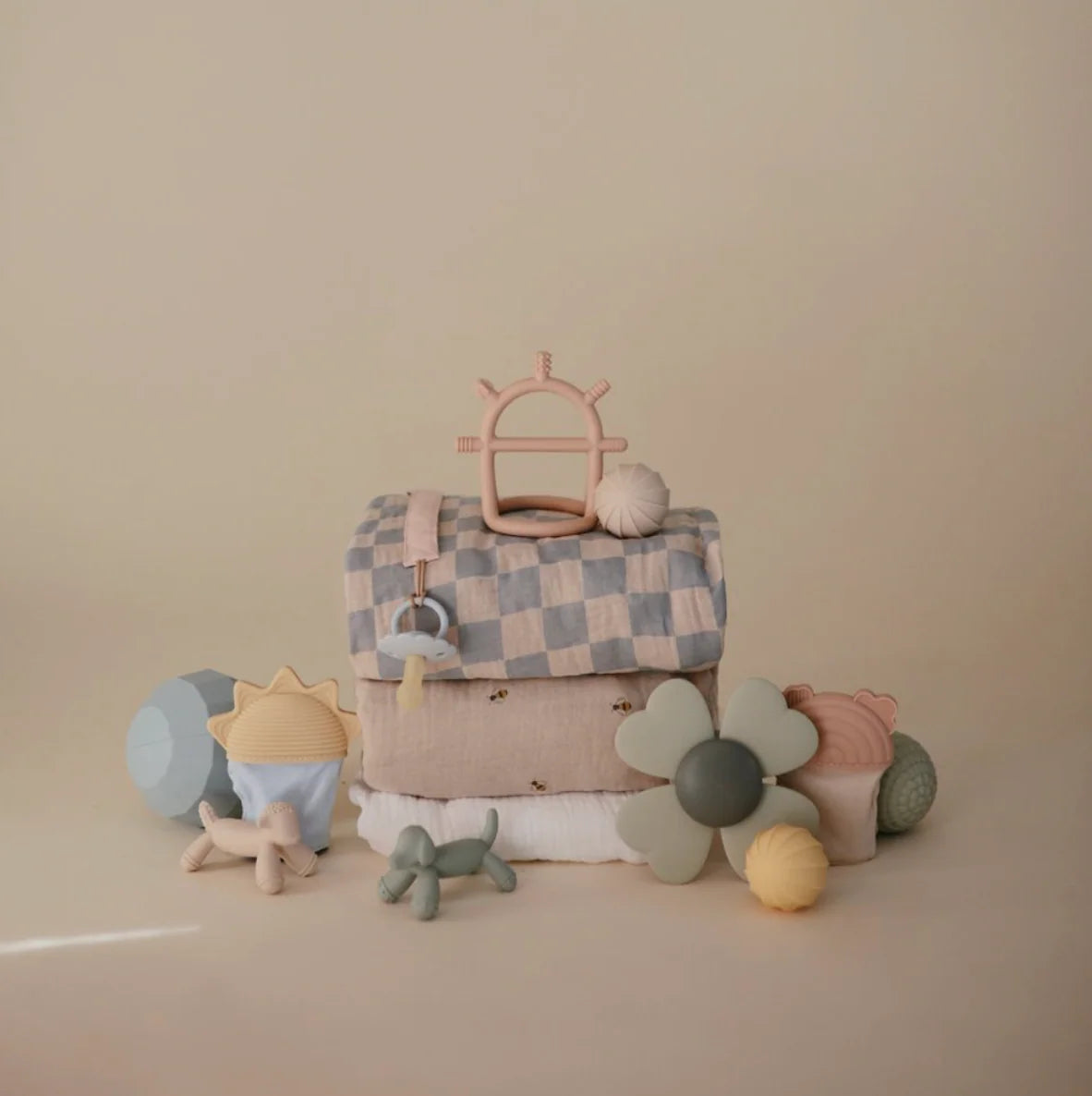 Our no-drop sensory teether will engage your little one’s senses as they discover self-soothing techniques. Made from 100% non-toxic, food grade silicone, this teether is safe for chewing as babies seek relief for sore gums.