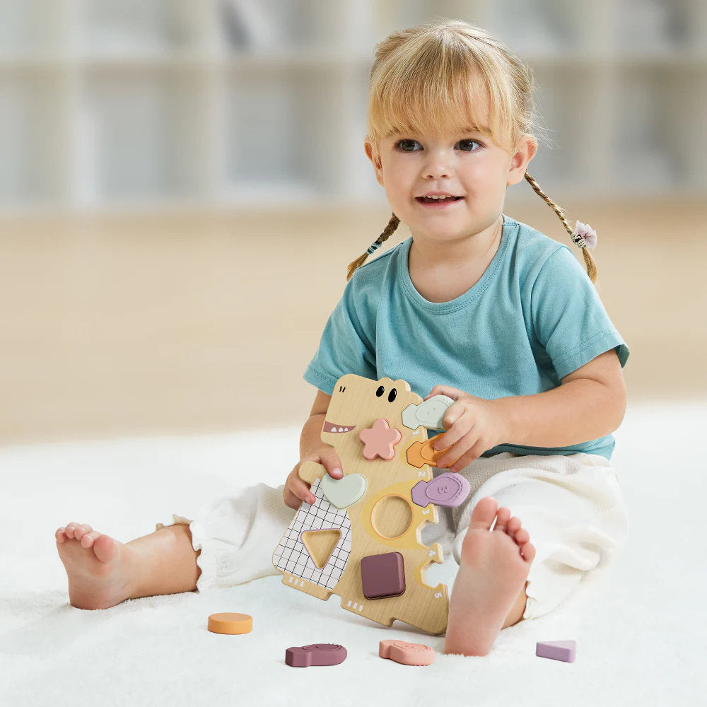 TopBright - Happy Dinosaur - Wooden Shape Sorting Activity Toy - 16pcs